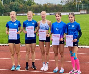 In der W14 versuchte sich Lotta Mühlinghaus (W13) schon jetzt am 7-Kampf der Älteren. Sie erreichte den Silberrang mit 2654 Punkten (100 Meter 14,57 Sekunden, Weitsprung 4,06 Meter, Kugelstoßen 5,91 Meter, Hochsprung 1,33 Meter, PB 80 Meter Hürden 15,58 Sekunden, PB Speerwurf 15,44 Meter und PB 800 Meter 3:08,91 Minuten).